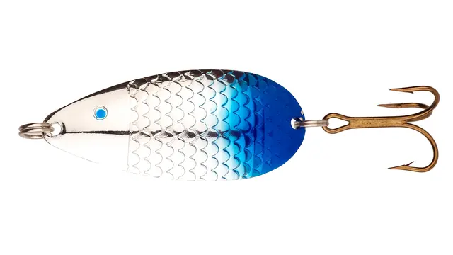 Søvik-Laksen är ett beprövat gammalt skeddrag för lax där modern färg och ytbehandling kombinerar det bästa av två världar. Den stora böjda ytan gräver sig in i strömmen mot botten, där laxen har sina ståndplatser. Søvik Laksen är ett perfekt val för laxfiske i juni när älvarna är översvämmande och kalla. Prova också där strömmen är som starkast och ån är djupast när ån blir varmare.